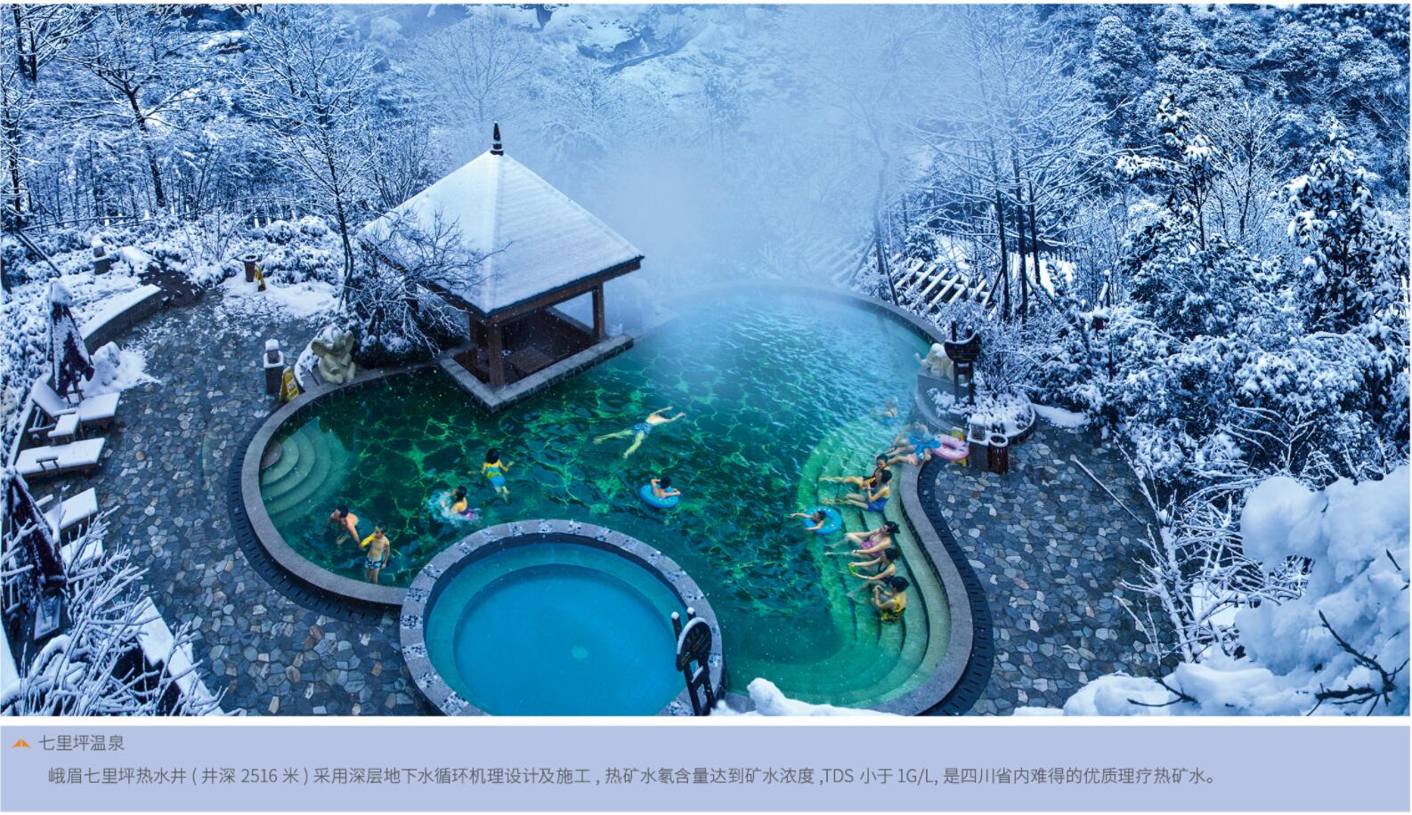地熱資源勘查是川勘集團的技術強勢項目,先后完成了四川省地熱資源調查評價、重點地區地熱資源勘查研究,以及雅安周公山、大邑花水灣、峨眉山、海螺溝、攀枝花紅格、崇州萬家坪、峨邊黑竹溝、犍為孝姑、安縣羅浮山、理縣古爾溝、峨眉半山七里坪、北川縣、青川縣、瀘縣等溫泉旅游區理療熱礦水的勘查評價,為促進旅游經濟發展做出了積極貢獻。