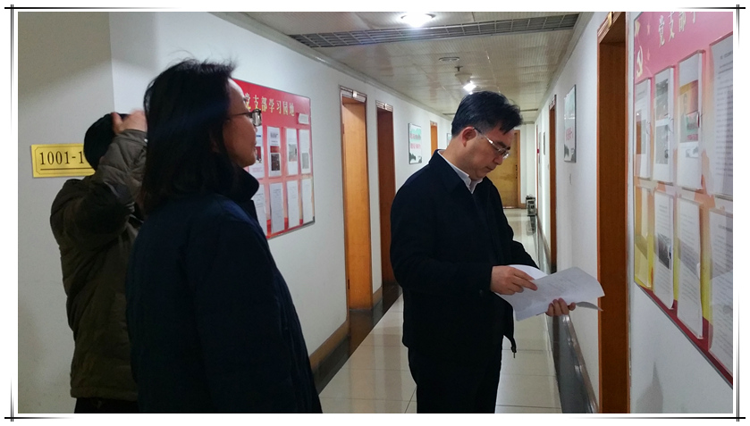 王承先一行參觀了機關職工文化走廊,檢查了機關黨支部學習園地及黨員積分制個人清單公示情況。
